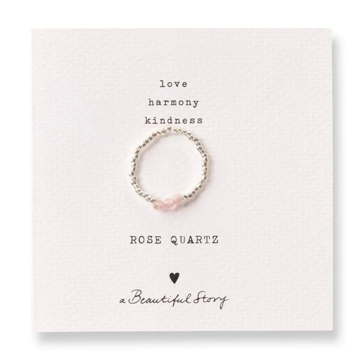 Voel de zachte energie van liefde en helderheid met de Clarity Rose Quartz Ring. Deze elegante ring bestaat uit drie rozenkwarts edelstenen, afgewisseld met verfijnde zilverkleurige kralen. De ring is elastisch, waardoor hij comfortabel om je vinger past en perfect te combineren is met andere ringen – of juist prachtig op zichzelf schittert.