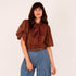 Romantische Blouse met Pofmouwen en Kanten Strik – Bruin