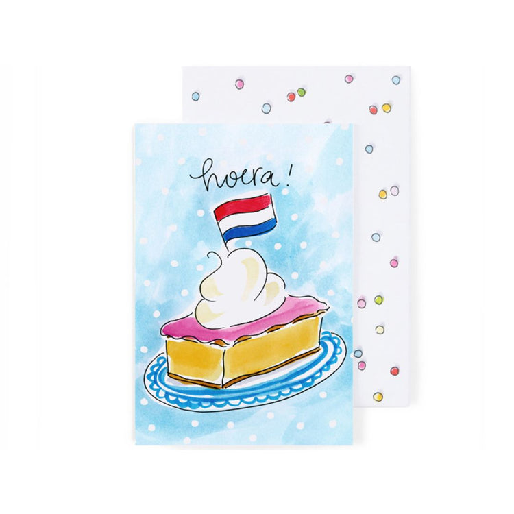 Natuurlijk wordt elke kaart geleverd met een bijpassende vrolijke envelop, zodat je jouw wens stijlvol én compleet kunt versturen. Het herkenbare, handgetekende Blond Amsterdam-design zorgt direct voor een lach op het gezicht van de ontvanger.