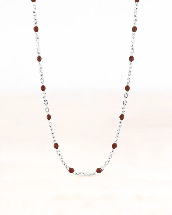 Korte Ketting Cognac met Dikke Kralen | Trendy Statement Sieraad- Prix normal