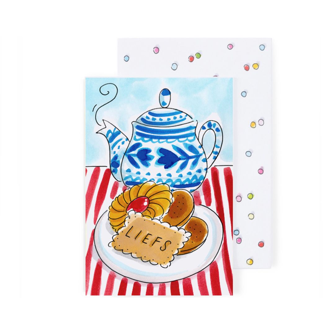 Natuurlijk wordt elke kaart geleverd met een bijpassende vrolijke envelop, zodat je jouw wens stijlvol én compleet kunt versturen. Het herkenbare, handgetekende Blond Amsterdam-design zorgt direct voor een lach op het gezicht van de ontvanger.