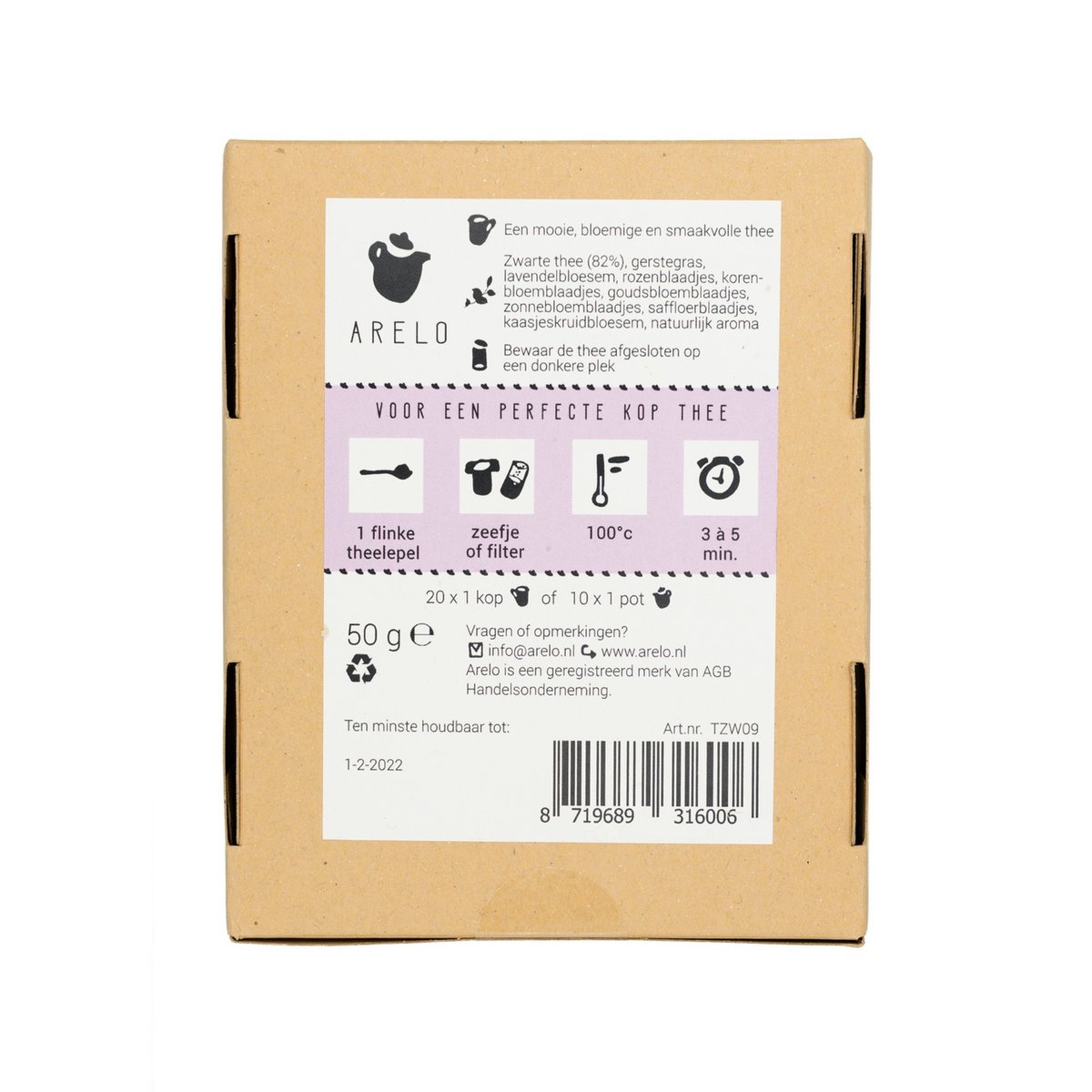Deze bloementhee is een feest voor het oog én de zintuigen. Een elegante zwarte thee, rijk gevuld met kleurrijke bloemblaadjes zoals lavendel, rozen, korenbloem, goudsbloem en meer. Het resultaat? Een heerlijk bloemige en zachte smaak die je echt even laat ontspannen.