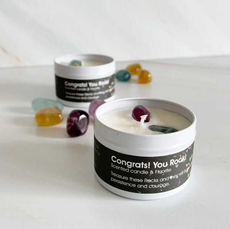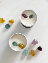 In iedere kaars zit een tweetal vrolijk gekleurde steentjes die matchen bij de geur. Is het kaarsje op, spoel dan de edelstenen af onder lauwwarm water om de was te verwijderen en je houdt er een blijvend aandenken aan over.