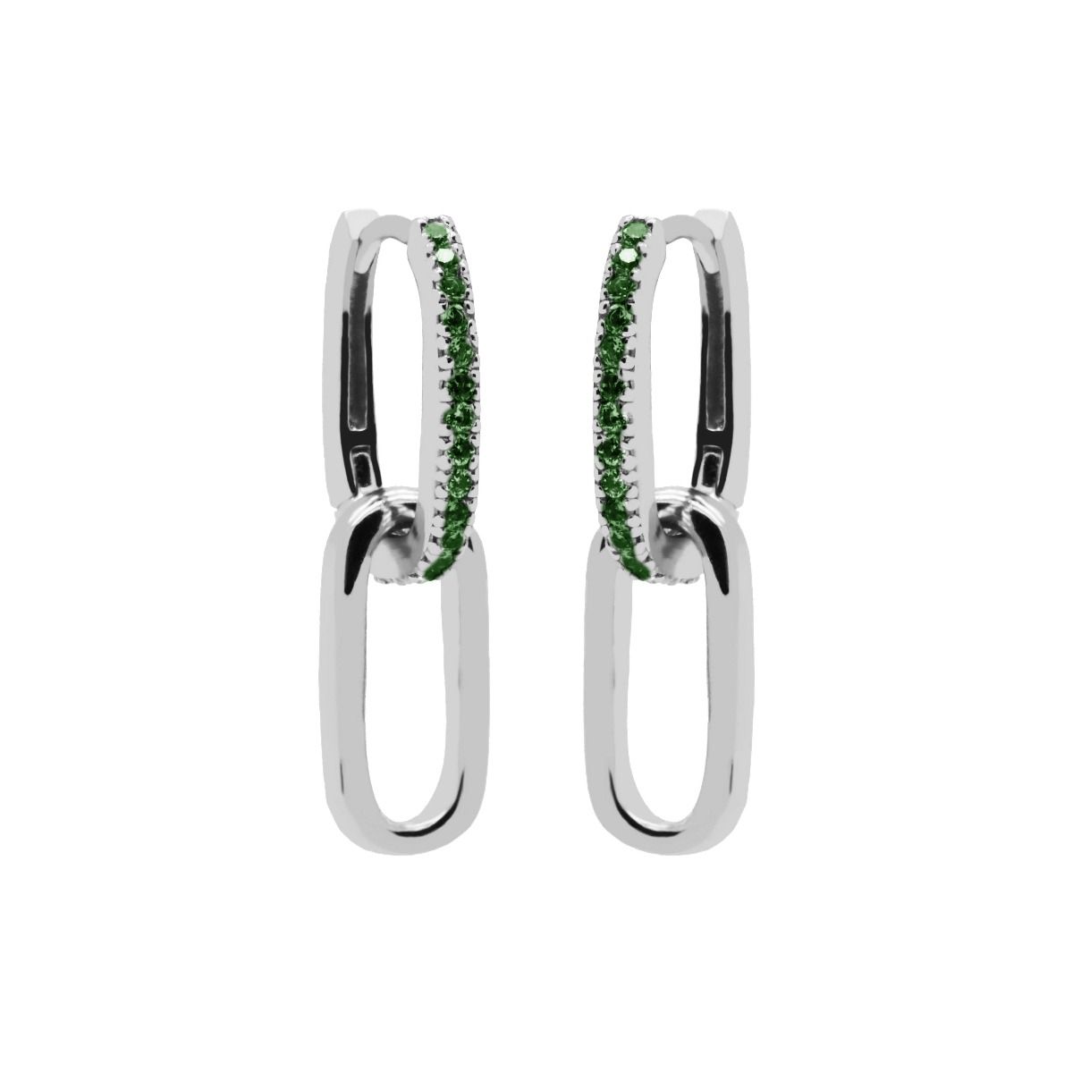 Plain Hinged Hoops Zirconia EMERALD GREEN Densely ZIlver