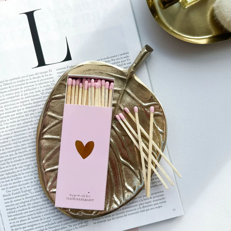 Deze luxe lucifers zijn bijna te mooi om te gebruiken! Met hun elegante design en stijlvolle gouden hartje zijn ze een echte eyecatcher op tafel. Het luciferdoosje is voorzien van een verfijnde goudfolie opdruk, wat zorgt voor een chique en warme uitstraling. Binnenin vind je 40 lange witte lucifers (10 cm), perfect om je favoriete geurkaars aan te steken of als sfeervolle decoratie in je interieur.
