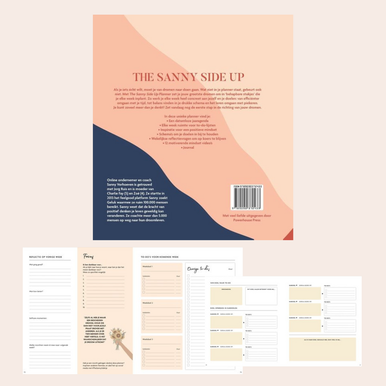 Zet vandaag nog de eerste stap richting jouw dromen met The Sanny Side Up Planner! Deze planner helpt je om je grootste doelen om te zetten in 'behapbare stukjes', die je wekelijks inplant. Zo maak je van je dromen werkelijkheid, stap voor stap.